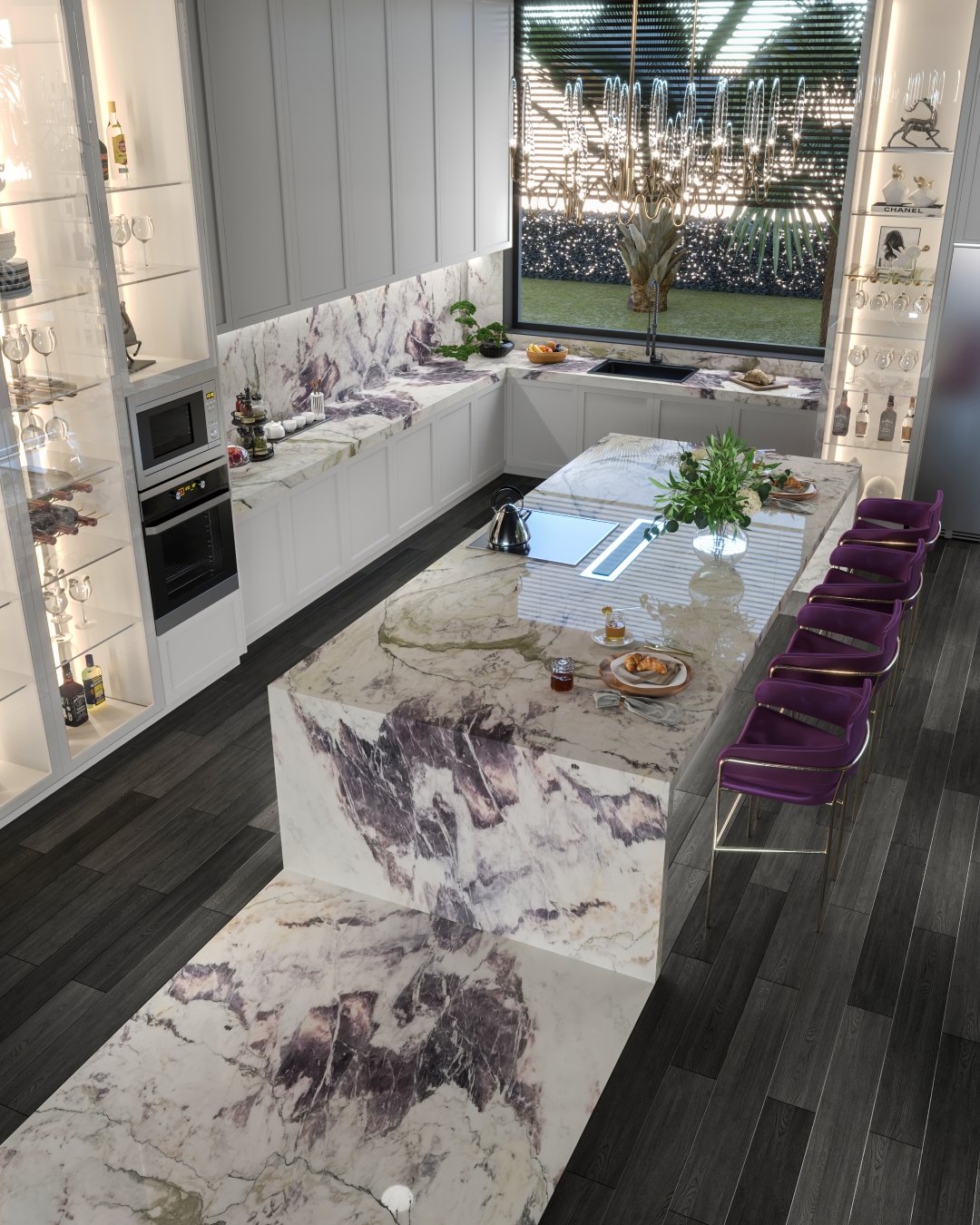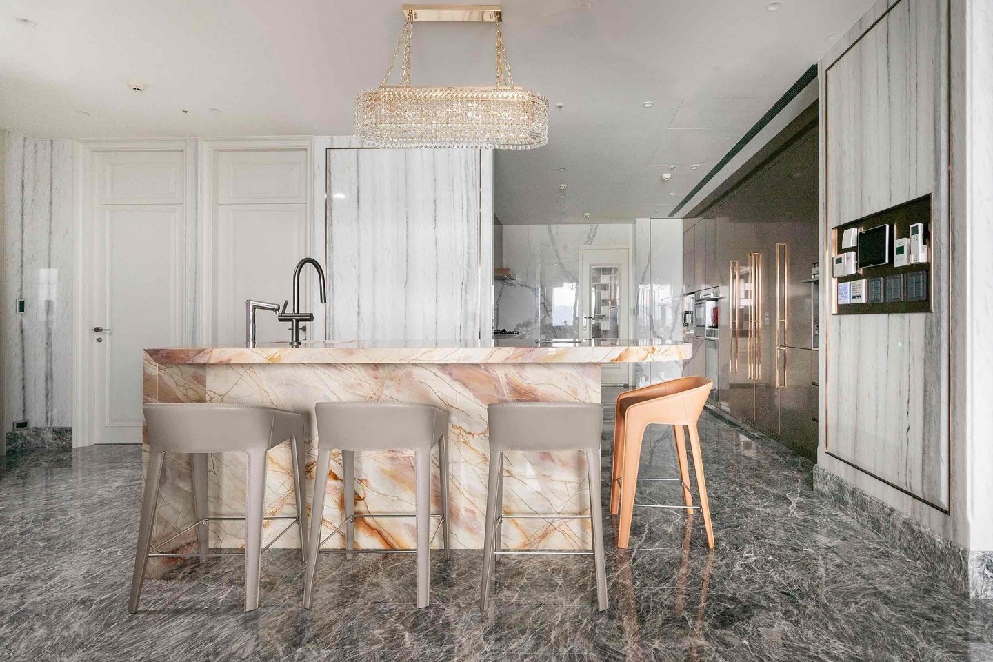 Elevate luxury spaces with this exclusive stone bar counter, sculpted from rare, high-end stones like Blue Onyx or Azul Macaubas. Each piece features dramatic veining and semi-translucent layers that interact with light, creating a mesmerizing focal point for penthouse lounges or VIP cocktail bars. Heat-resistant and non-porous, it combines artisanal craftsmanship with practicality for seamless entertaining.