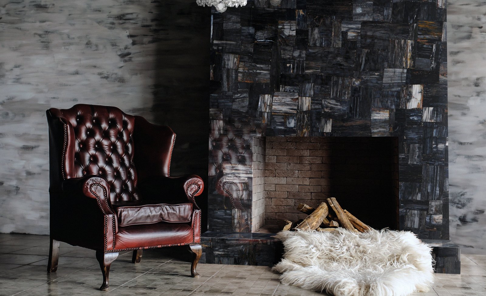 Mountain Lodges: Paired with oxidized steel flues to mirror erosion cycles