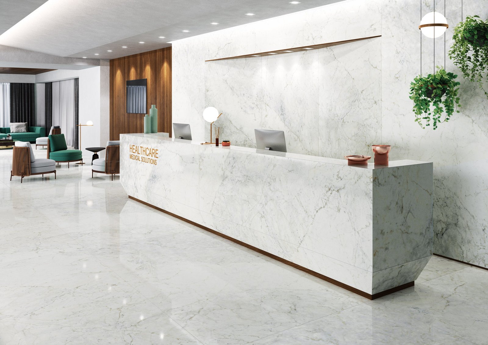 Make a lasting first impression with a marble reception desk. Its robust construction and glossy surface convey professionalism and prestige, ideal for corporate offices, hotels, or upscale retail spaces. Tailor dimensions and finishes to align with brand aesthetics.