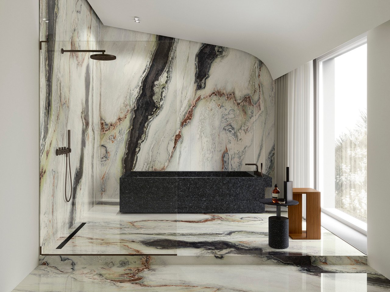 Cladding panels of Exotic Green or Coral Stone, finished with textured reliefs or high-gloss epoxy. Resistant to chemicals and impact, they redefine high-end kitchens, spa walls, or yacht interiors.